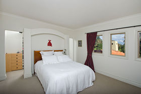 Then it is up the curved stairs to either three double bedrooms and a single or three double bedrooms and two studies. The main bedroom is huge with what could be a study or rather large dressing room attached. The ensuite contains tiled shower, double hand basins and a bath. Included is also a toilet, bidet and under floor heating. The other two bedrooms have their own en-suites as well making this wonderful for family or guests. The single bedroom / study is useful for extra visitors.