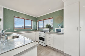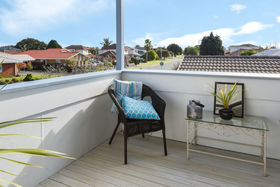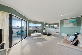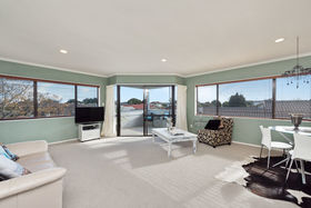 Upstairs is two double bedrooms, very modern bathroom and a very open plan kitchen, dining room and lounge. There are views from the deck off the lounge, of the Omanu Golf Course. From the second bedroom there are great views of the Park bordering the property, with lots of space for children and animals to exercise, so you can't be built out.