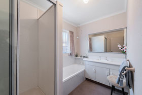The master bedroom has a sliding door to a very spacious back yard. It also features a walk-in wardrobe and en-suite. There is another bathroom with a separate toilet to service the other bedrooms
