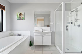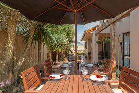 Mediterranean themed, a majestic entrance way heralds expansive open plan living along with an entertainer's kitchen complete with breakfast bar and bi-fold windows that lead to a patio beyond for alfresco dining. Two bedrooms and a bathroom are also on this level while the main bedroom is found above, along with a small reading deck which is perfect in the warmer months. An ensuite complete with 'his and her' bowls, walk in robe and private office (or potentially fourth bedroom) complete the ensemble.