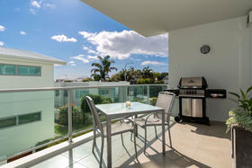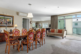 Enter through a triple height, light filled lobby and either take the lift or the stairs to what is a very elegant and beautifully appointed home, where classic neutral shades set the mood. Three extra-large bedrooms each open onto their own private deck and are generous enough to comfortably accommodate king size beds, plentiful wardrobe space and have space to spare. The master suite boasts a sizable walk through robe to an adjacent tiled ensuite replete with his and hers basins, while a separate powder room and well-designed bathroom ably cater to family and guests plus a large office is well appointed off the main living area of the apartment.