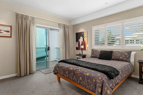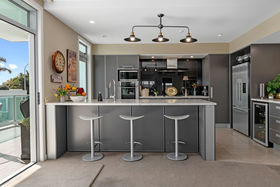 Entertainers and enthusiastic chefs will enjoy the sleek yet practical kitchen with its stone bench tops, stylish appliances and separate wine fridge with dedicated bar area. Open plan living flows to a sun drenched deck facing towards the Port with Mt Maunganui rising up in the near distance, and overlooking communal gardens where lemon and lime trees frame a courtyard used for gatherings - bring on the Gin and Tonic's