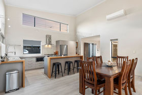Impressive indoor - outdoor flow, the home is wrapped with plenty of outdoor entertaining spaces with wired lighting around the decking for extra ambience at night.