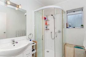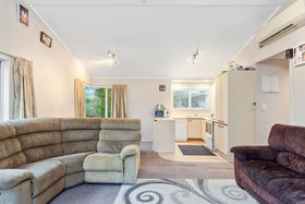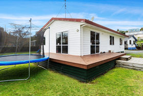 This very tidy home has three bedrooms and open plan kitchen, dining and living opening out to a large deck area overlooking the park. The practical kitchen has good bench and cupboard space, along with a pantry and dishwasher. There is a heat pump for winter warmth, a ventilation system and bottled gas hot water.