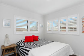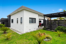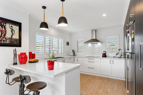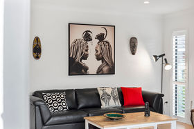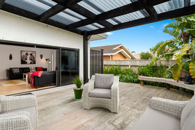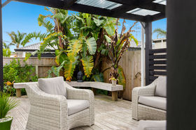 Tropical planting, outdoor loggia and spacious hardwood decking extend your living northwards for private entertaining and relaxation. A simple exterior pallet of white solid plastered brick and ebony board & batten firmly places this property in the 21st Century. All thanks to a previous spectacular transformation by Hartstone Homes.