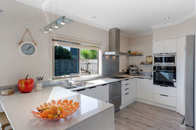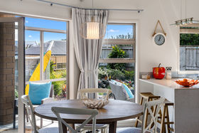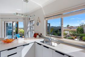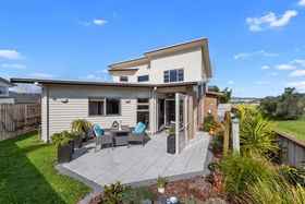 An entertainers dream or relax in its warm sunny atmosphere. Backing onto Parewaitai reserve and fully fenced with auto gates on the drive way. The downstairs has kitchen , large dining area , seperate lounge , bedroom with en-suite ,triple car garage with internal entry. Upstairs has a office/study , 2 bedrooms and semi en- suite. This home is built for the sun with a great location.