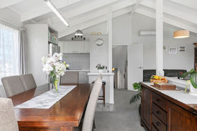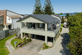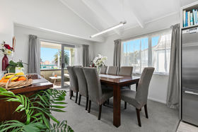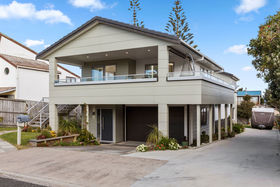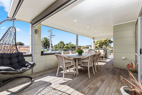 Enjoy your morning coffee or entertain friends on the modern north-facing deck which encompasses the home. In the cool of the evening simply roll down the large screen and snuggle-up to the sound of the waves crashing or stroll across the road to the beach access and wander down for a quick dip or an evening spent fishing. Return with your haul and prepare a meal on the outdoor filleting bench or modern upstairs kitchen.