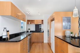 Circa 2004, this coastal haven draws on contemporary trends to deliver a beachside aesthetic that's practical, functional and every ounce as relaxed as the sandy shoreline nearby. 'Golden Suntan' toned timber cabinetry and earthy toned carpet meets floor-to-ceiling sliding doors to provide effortless flow between the open-plan living, dining and capacious covered balcony.