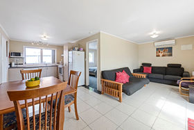 located within a short stroll too popular Papamoa beach , schools , shops and all other amenities. This property is private and secure. With a fully fenced north facing section for a warm sunny aspect. The kitchen dinning and lounge open up onto a large covered in outdoor area for those summer BBQ's or just relax and enjoy the atmosphere.
