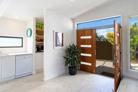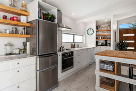 Prepare to have your senses excited. This coastal creation embodies all that is so good about living in a seaside environment. Simple uncluttered open plan living, whitewashed walls, rustic plank style flooring, Mediterranean inspired tiling, natural timber, and the smell of salt air. You are that close to the sea you can swim before breakfast!