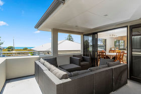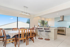 Level 2 Upon entering the second level you will enter the "L" shaped open plan lounge, dining and kitchen. With a large deck off the dining room, there are sea views obtainable from here. Enjoy creating your cuisine, with sea peeps from your kitchen. We also find two double bedrooms, bathroom and w.c here. One of the bedrooms has a computer nook with sea peeps here too!