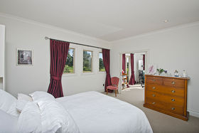 Then it is up the curved stairs to either three double bedrooms and a single or three double bedrooms and two studies. The main bedroom is huge with what could be a study or rather large dressing room attached. The ensuite contains tiled shower, double hand basins and a bath. Included is also a toilet, bidet and under floor heating. The other two bedrooms have their own en-suites as well making this wonderful for family or guests. The single bedroom / study is useful for extra visitors.