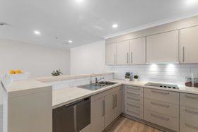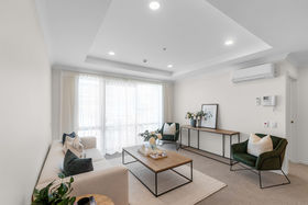 Enjoy a well-designed layout with bedrooms positioned either side of the open-plan kitchen, dining, and lounge. The elevation from Level 3 sees main bedroom and balcony views of the Manukau Harbour and Māngere Mountain while the second bedroom looks to the lush tree canopy of Monte Cecilia Park.