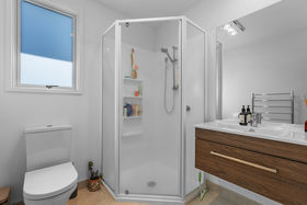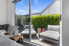 Upstairs features three roomy bedrooms, including a master with its own ensuite and large walk-in wardrobe, along with a family bathroom. Downstairs, the lounge and kitchen flow together, with practical, quality finishes throughout. The kitchen and living area open out to a sunny patio, creating a seamless indoor/outdoor flow that's perfect for relaxing or entertaining.